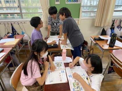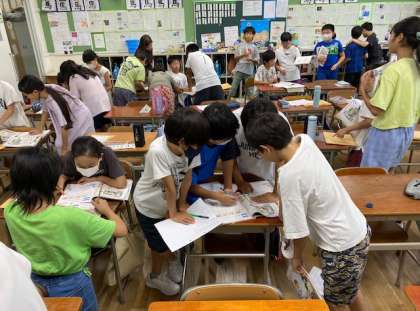 5年生の外国語活動では、放課後の時間について尋ね合っていました。テレビを観る時間、晩ごはんを食べる時間、お風呂に入る時間、寝る時間について、尋ね合って、友だちとの違いを知り、大いに盛り上がっていました(^^)