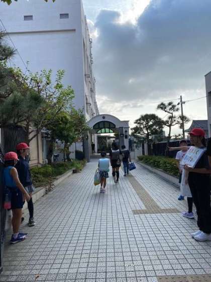 子どもたちが登校する時間帯のほとんどは、少し秋を感じる中での登校となりました。