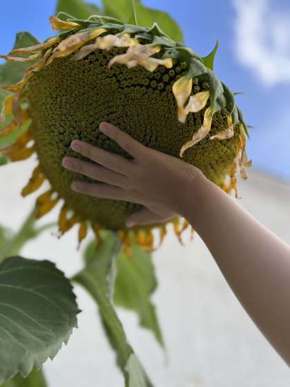 また、はるかのひまわりは脇芽から花を咲かせたり、早く咲いたひまわりはこうべを垂れて種をポロポロ落としている様子が見られました。