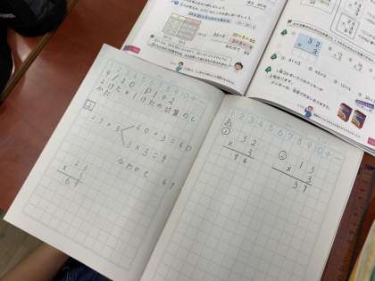3年生の算数では、『2けた×1けた』のかけ算の筆算の学習に入りました。