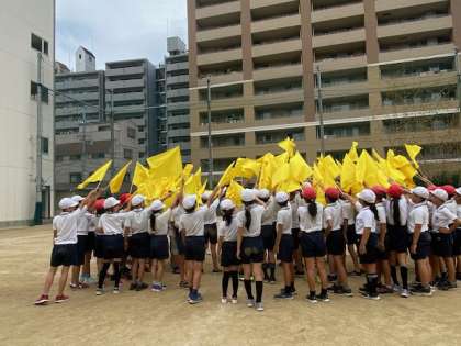 5年生の体育は、団体演技の修正箇所や最後の退場の仕方などを学年で練習していました。