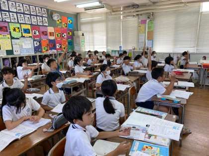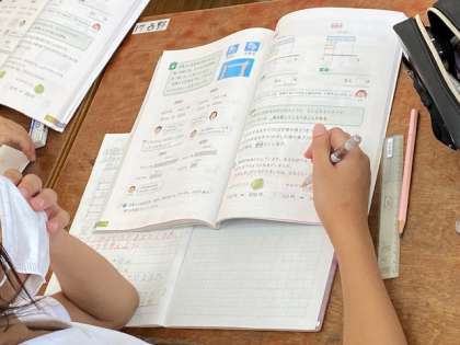 4年生の算数では、『どちらの包帯がよくのびたか』をめあてに学習していました。