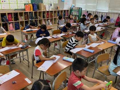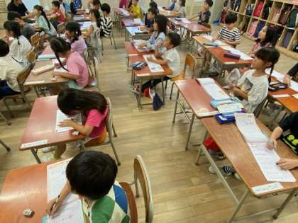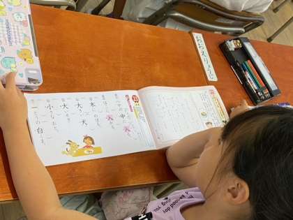 1年生の教室を覗いてみると、漢字ドリルに取り組んでいました。