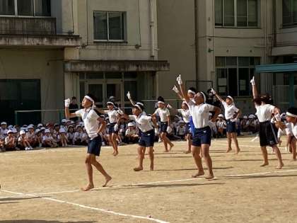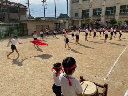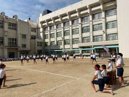 前半は、応援合戦の練習をしました。応援団の迫力に他の子どもたちは圧倒されていました。