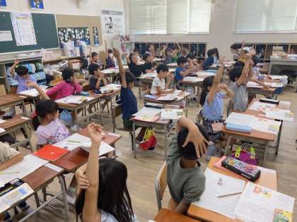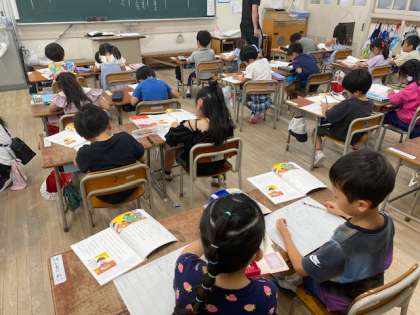子どもたちは、動物たちがしたことが書かれてある教科書の文に線を引き、発表をしていました。
