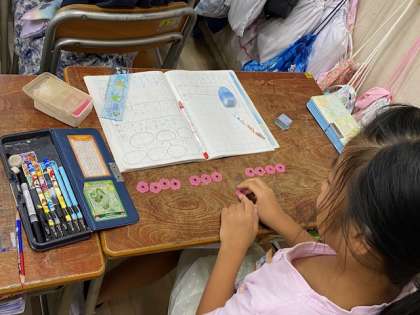 おはじきを使って1単位の数のいくつ分という捉えを繰り返し体験していきます。
