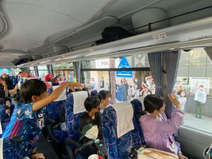 早朝にも関わらず、たくさんの保護者のみなさん、PTA役員、教職員のみなさんなど、多くの方々に見送っていただきました。ありがとうございます。