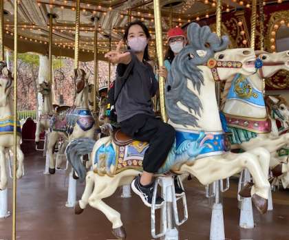 優雅にメリーゴーランド。出会うと手を振ってくれたりピースサインをしたり(^^)
