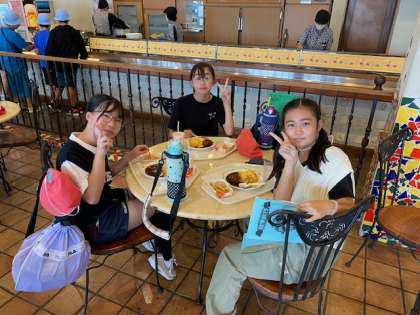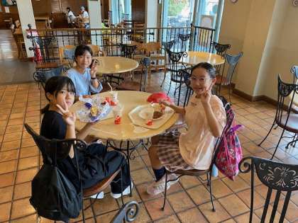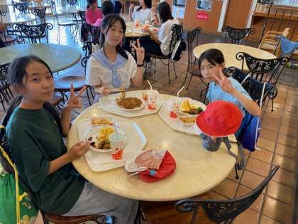 ランチはアトラクションに並ぶ楽しみの一つ。たまたま入ったレストランで出会った子たち(^^)