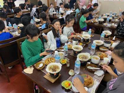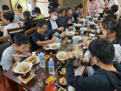 修学旅行ではラストの食事です。味わいながら食べましょう(^^)