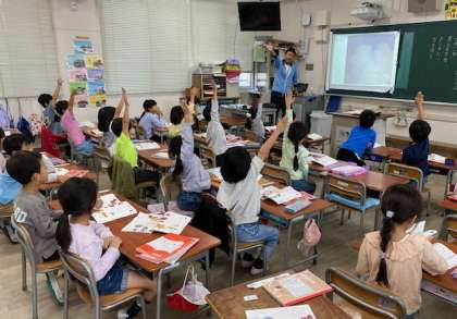 1年生の国語では、『なにに見えるかな』ということで、雲の写真を見て何に見えるか答えていました。