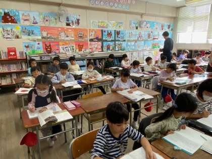 2年生の国語では、『ビーバーの大工事』というお話の学習をしていますが、今日は、『ビーバーになったつもりで自まんしよう』というめあてで学習が進んでいました。子どもたちは、ビーバーになりきって自分の考えを書いていました。