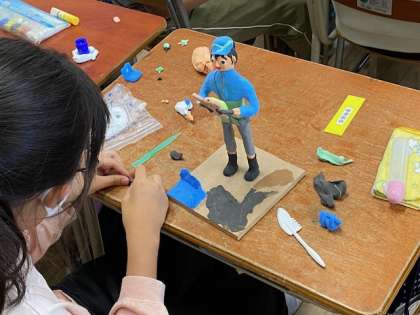 6年生の図工では、将来の夢ともなる将来就きたい仕事を粘土で製作しています。見ていると、その子の生き生きとした姿が浮かんでくるようでした(^^)