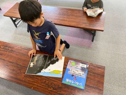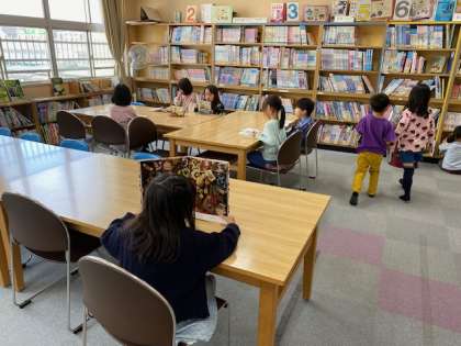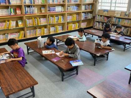 1年生の図書の時間をのぞいてみました。子どもたちは、自分が興味を持った本を手にして、ゆったりと読んでいます。中には、この間学習した船に関する本を手にして、「これ、前習った!」と、周りの子に言ってる子もいました(^^)