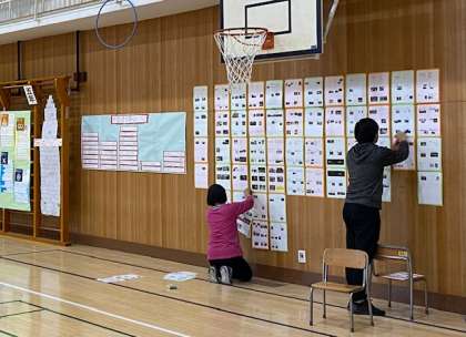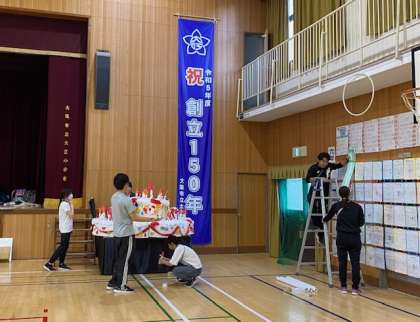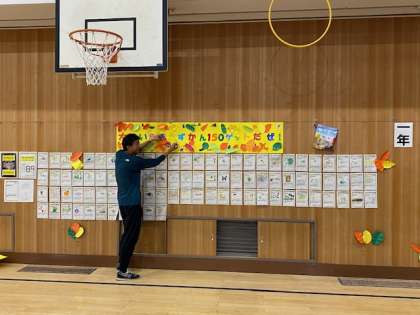 明日は『大江っ子チャレンジ150!中間報告会』です。その準備を放課後行いました。