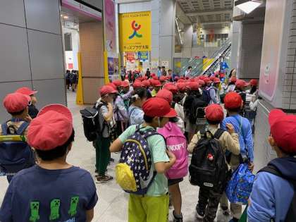 3年生の社会見学、午前中はキッズプラザ。テキパキ行動してきたこともあり、予定よりも1本早く電車に乗ることができました。