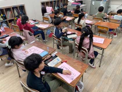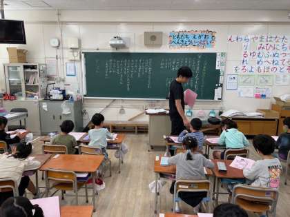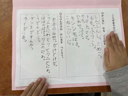 本日、1年生は言葉あそびの単元から回文を学習しました。