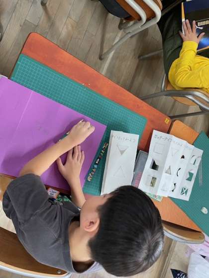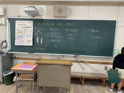 本日、2年生の図工学習はカッターの使い方です。カッターを使う上で気をつけるべきポイントを子どもたちは学びました。練習の用紙を使って何度も練習を重ねていました。
