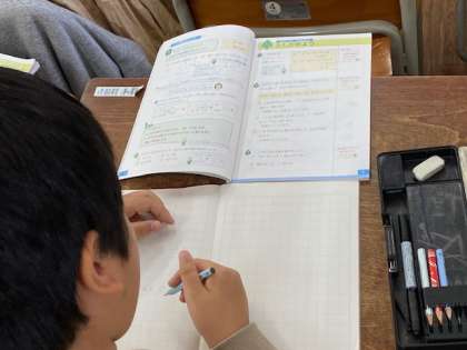 4年生の算数では、たし算とかけ算が1つの式にある計算について、練習問題に取り組んでいました。