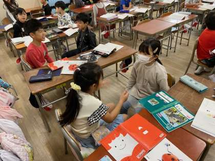 まずは、隣どうしで、次により多くの子の前でと、話す場を広げます。