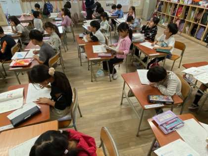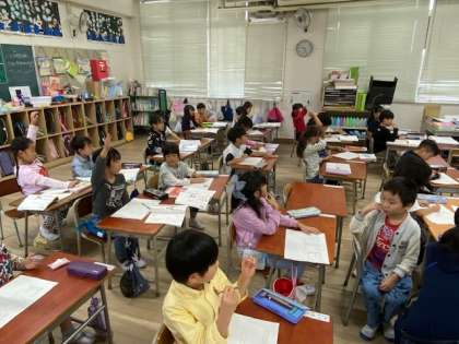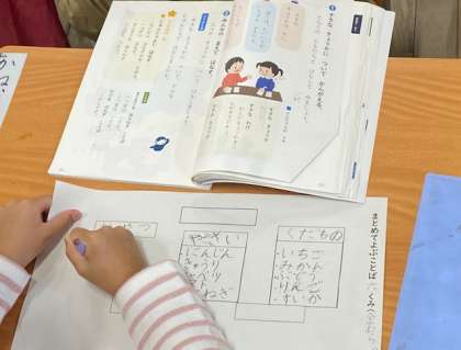 1年生の国語では、『すきなきょうかはなあに』というお話を通して、好きな教科、さらには好きな『くだもの』『やさい』『おやつ』についても考えて書き出していました。
