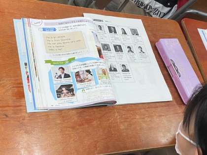 6年生の外国語では、有名な日本人について、写真とその人の特徴や実績が書かれたものをもとに、人物当てクイズをしていました。