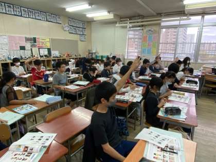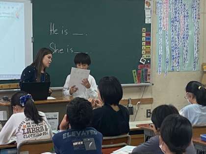ルーレットで出席番号が当たると、前に出て英語で出題していました。