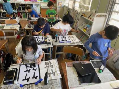 書き終わった後は、友だちに「どっちの字がいいと思う?」と尋ね、参考にしている子もいました(^^)