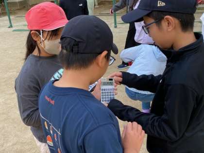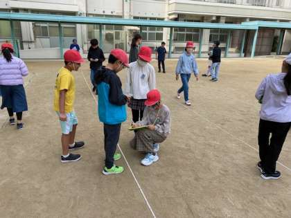 5年生の算数では、『自分の歩幅と歩数を活かして、運動場のたてと横などの長さを測ろう』と取り組んでいました。
