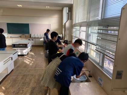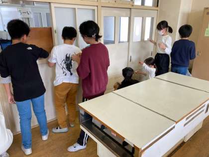 記念式典には、たくさんのお客様が来られます。当日、お客様の控え室として使われる家庭科室について、6年生の子たちが教職員とともに、すすんで掃除をしてくれました。