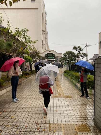 雨の日も子どもたちのあいさつの声が校舎に響いています(^^)