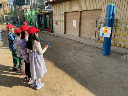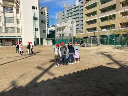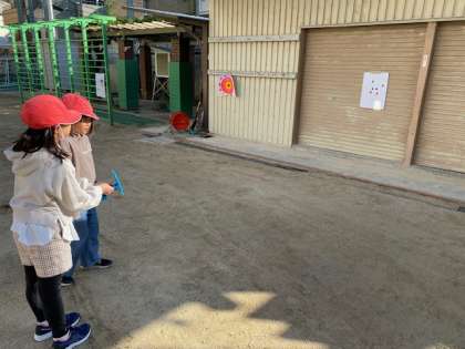 3年生の理科では、『光の性質』ということで、鏡を使って手作りの的めがけて太陽の光を反射させていました。