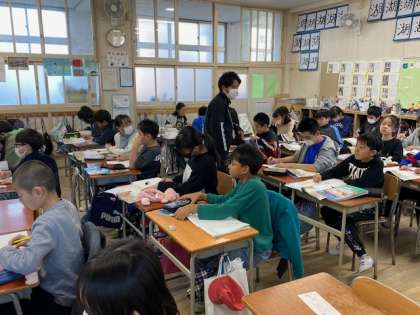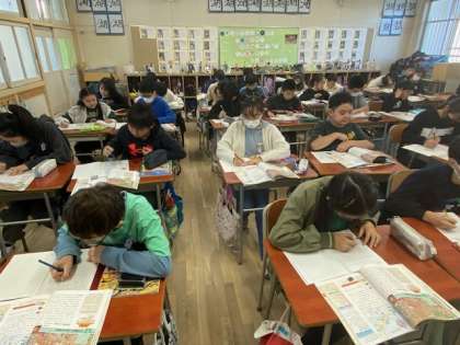 今日の社会では、時代のキーワードが示され、そのキーワードを使った探究活動を行いました。