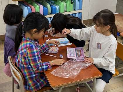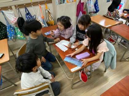 1年生の教室をのぞいてみると、11月の残り半分の期間、班で頑張ることを考えていました。