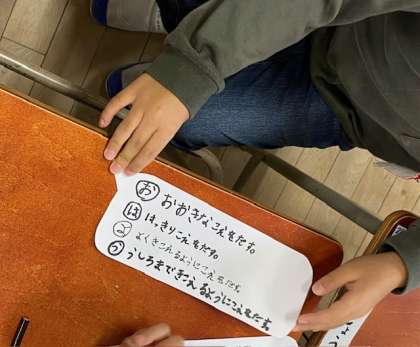 中には、あいうえお作文のように、『あ・い・さ・つ』を先頭の文字とした頑張ることを書いている班もあって驚きました(^^)