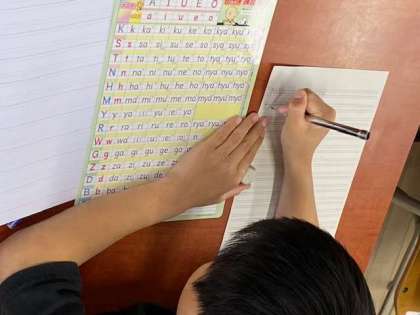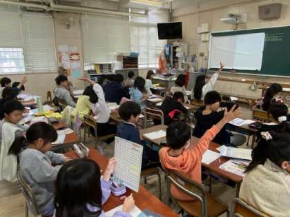 3年生の教室をのぞいてみると、ローマ字に取り組んでいました。自分の名前や難しい言葉をローマ字で表すことなど、ローマ字表を読みながら積極的にチャレンジしていました(^^)