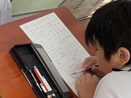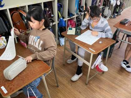 4年生の理科では、『ものの温度と体積』のテストをしていました。