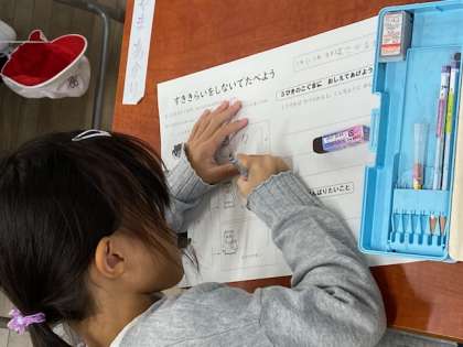 1年生は『すききらいをしないでたべよう』とのめあてで、学習は進みました。日頃食べているものについて、食べることによって得られるの働きについて学び、めあてについて考えていました。