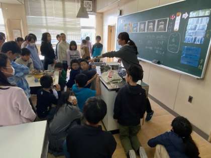 5年生の家庭科では、来週行うごはんを美味しく炊き上げる調理実習向けて、事前学習をしました。