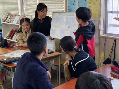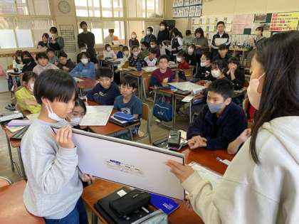 子どもたちは、これまでに理想とする町の未来像を班で見出しました。