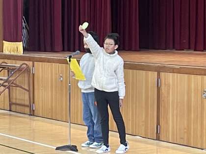 また、運営委員会の子たちからは、今月の生活目標『すすんであいさつをしよう』についての寸劇があり、全校の子たちに魔法がかけられました。さて、明日からのあいさつは、どのように変化するのでしょうか(^^)