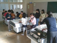 消化器を使った初期消火、煙中避難などの体験をしました。災害が発生した時、どんなことができるのか、体験を通して学習しました。