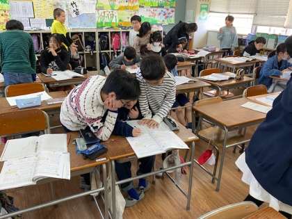 途中、互いの考えを交流する場面がありました。