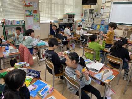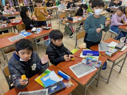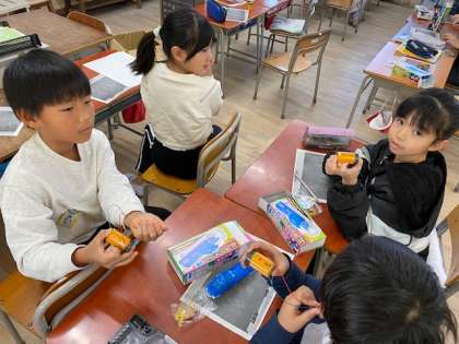3年生の理科では、豆電球と電池をどのようにつなぐとあかりが点くか、の実験をしていました。