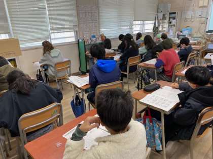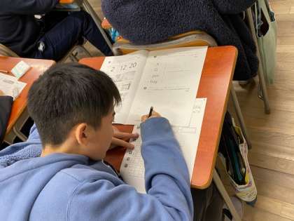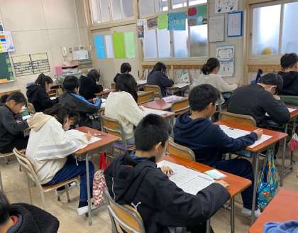 ヒアリング中心の問題なので、聴いては答えるの連続で、子どもたちはとても集中していました。