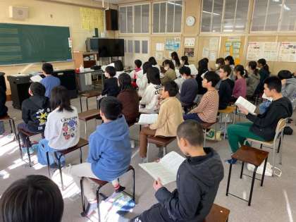 ほとんどの曲が、混声2部合唱となっています。上のパートか下のパートを歌うので、クラス内で定着していないと、学年でのハーモニーがくずれてしまいます。