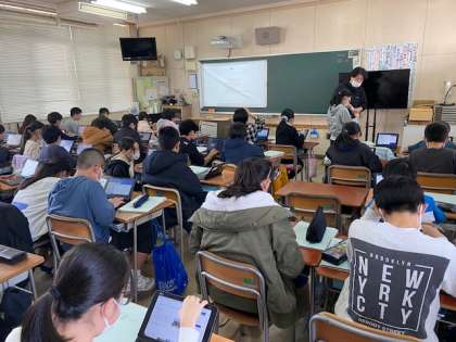 6年生の外国語では、前回have使い方を学習していましたが、今日は、haveを用いて場所当てクイズを作成しました。