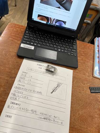 6年生の家庭科では『お掃除グッズをつくろう』と、隅々までキレイにするための手作りできるお掃除グッズを調べていました。