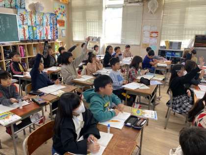 一斉に子どもたちの手が挙がり、「子です」という答え。『分子』と書いて『ぶんし』と読みます。