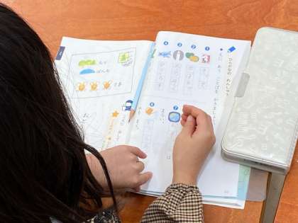 1年生の国語では、『ひらがなのれんしゅうをしよう』ということで、促音である『っ』や、『ろうそく』のようにのばす音が含まれる言葉について、平仮名で書いていました。